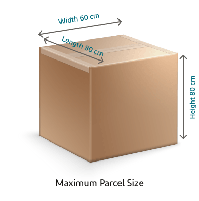 with a maximum size of 80cm (L) x 60cm (W) x 80cm (H).